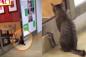 サンドウィッチ店「サブウェイ」の前で仲良くおこぼれを待つ猫とネズミ
